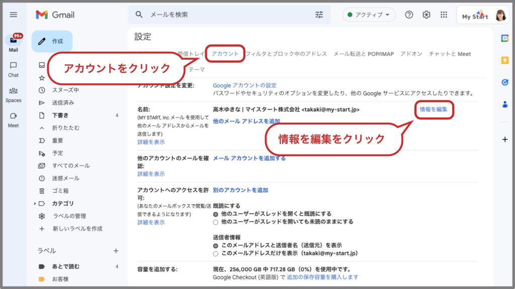 Googleメールの場合、ユーザーのためなら名前変更を任意に行うことが可能であります。* 新しい名前にタイムラグがあることを覚えておいていただきたいと思います。つまり、すぐに新しい名前が反映されるわけではないということ。***