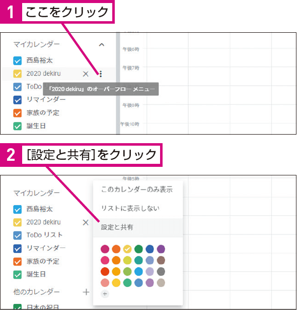 1. 設定画面へ移動: 適当な手順によるアプリ内の「設定」メニューへのアクセスから始めます。特定のカレンダーの場合は個別の設定を開くため、まず表示されているすべてのリストの中を探してそのカレンダーを選択させましょう。