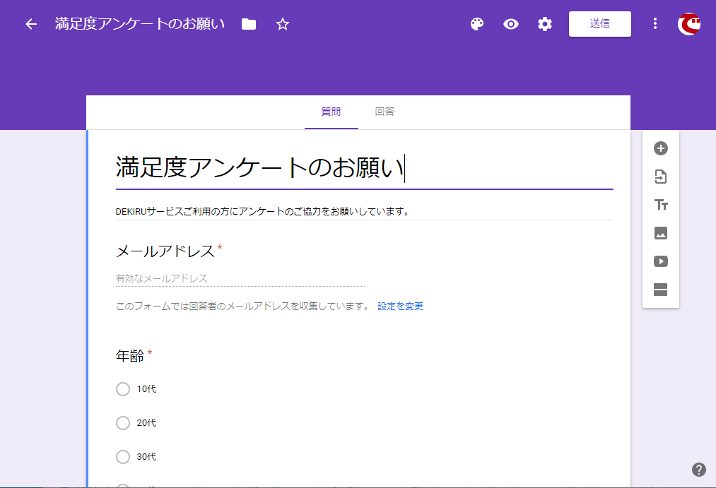 これが可能な理由は、GoogleフォームではWebページと似たような機能性を持ち合わせているからです。それゆえ、デザインに関する操作が同様に対応しています。これらのカスタマイズにより、ブランドイメージを一貫させるためのアンケートを作成することができます。